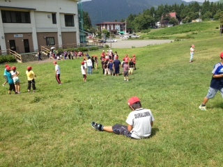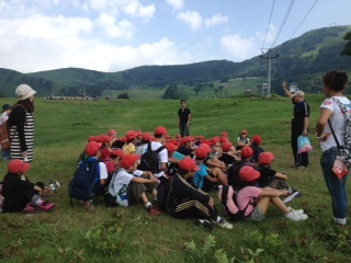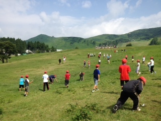 3日目は好天に恵まれ、高原の風もさわやかです。紙飛行機を飛ばしたり、はないちもんめをしたり、散策したりと思い思いの高原遊びをしました。
