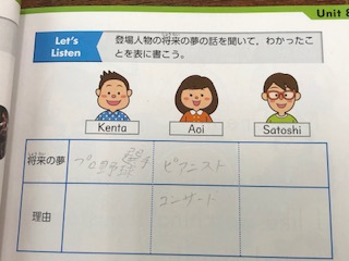 今日はリスニングの学び!音声を聴いて、子どもたちの将来の夢を聴き取ります!