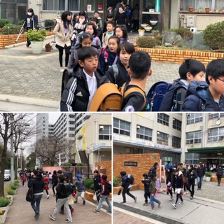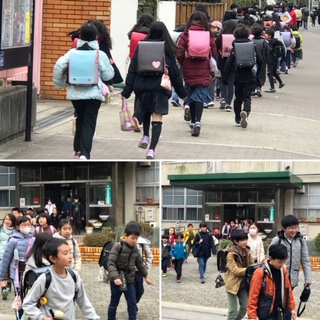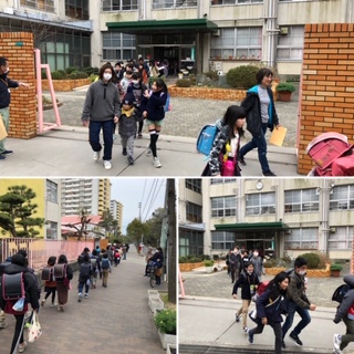 元気よく門から出ていく子どもたち!もしもの時には、集団下校をします!たくさんの保護者の方がお迎えに来られていました。みなさん!ありがとうございました!