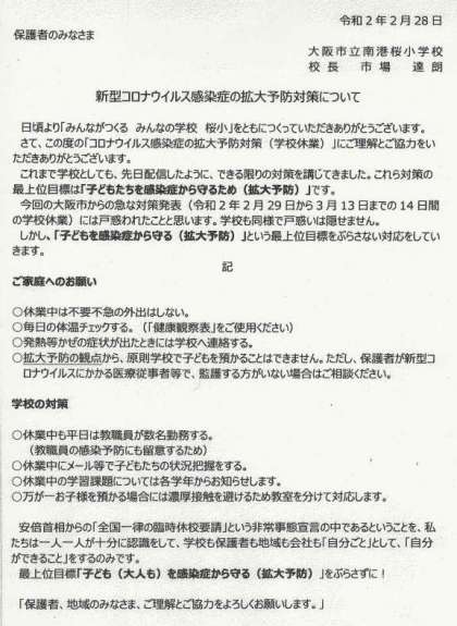 保護者のみなさま、地域のみなさまのご理解とご協力をお願いします。