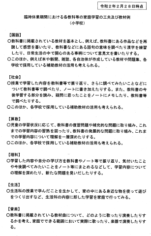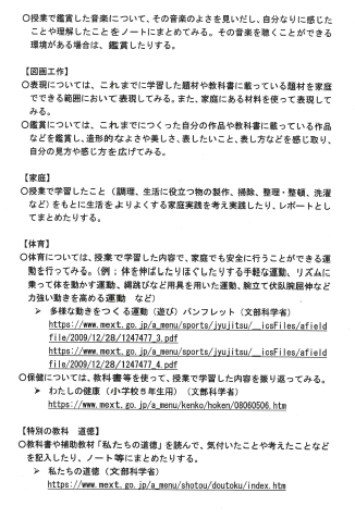 臨時休業期間における各教科等の家庭学習の工夫及び教材例が文部科学省より出されていますので、参考にしてください。