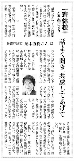 さて、今朝の某新聞紙面にこんな記事を見つけましたのでシェアしたいと思います。子どもを守る大人としてのヒントになればと思います!