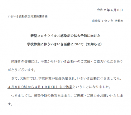 学級休業に伴ういきいき活動について