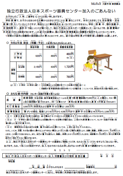 【新1年生】日本スポーツ振興センター加入のごあんない
