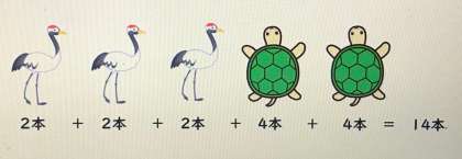 この6本は、「つる」の足の数2本の3倍なので、「つる」は3ひきとなる。