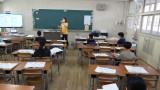 どの学年も、手紙を配ったり課題を集めたりの登校日です。先生と一緒に、一つずつ確かめています。