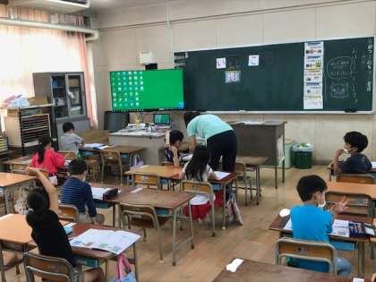 1年生の教室をのぞいて見ると「国語」の学習をしていました。