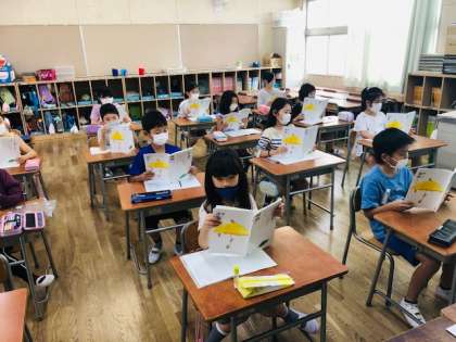 算数は「わり算」学習です。全部の数から同じ数ずつ分けて一人分の数を求める問題をしました。わり算の答えを考えるときに、かけ算の九九を頑張って思い出していました。ご家庭でもかけ算カード等がありましたら、復習をお願いいたします。