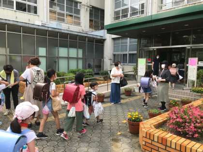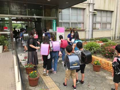 8時10分より前に学校に到着している児童は、しばらく待ってもらっています。