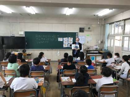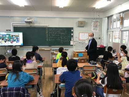 5年と6年での英語学習の様子を見ていました。Jon Pontius ティーチャーが話す言葉は、英語のみです。