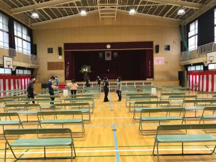 児童の用意ができたタイミングで撮影を行いますので、保護者の方々はサッと場所についていだけますようお願いいたします。