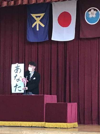 5分弱のお話だったと思いますが、どのクラスの人も最後までお話をしている人の方を見て聞くことができていました。