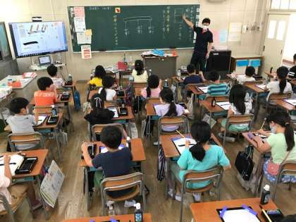 その最初の第1時は、教頭先生から筆の使い方について学習しました。