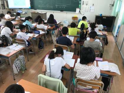 4年の算数では2つの場所の気温を表した折れ線グラフを見て、そこから分かることを見つけていました。