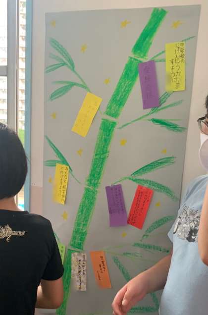休み時間に短冊へ願い事を書いていました。