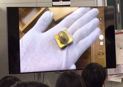 しっかり考えることができた授業の終わりに、何やら高級感溢れる箱が…。