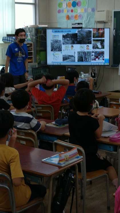 「自然災害から命とくらしを守る」という内容で、4年生の学級で理科の授業を行っていました。