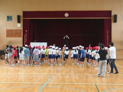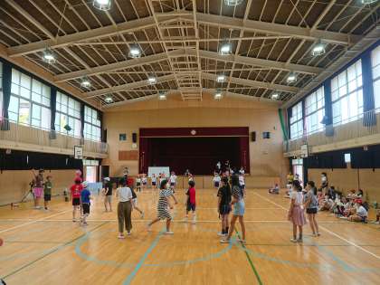 その後、各組赤組白組に分かれてドッジボール大会をしました。