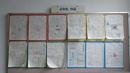 夏休み新聞も、夏休みの出来事をまとめたものや観察記録的なものもあり、読みごたえがあって、さすが4年生。それぞれ個性的で、花言葉や鍾乳洞のことなど興味を持ったことの調べ学習をまとめているものや、クイズの専門誌になっているもの、夏野菜の栽培日記など様々。短い夏休みでしたが、しっかりとまとめられていました。