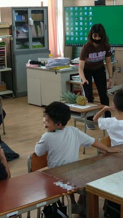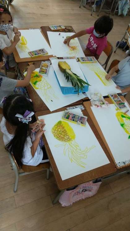 よく観察してパイナップルにはどんな色が見えるか確認していきます。