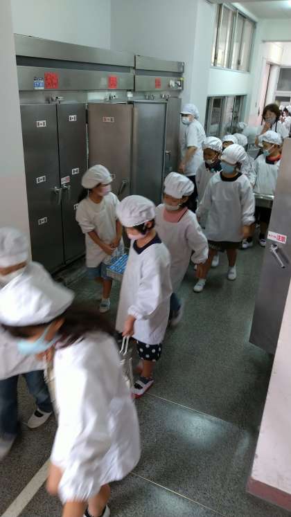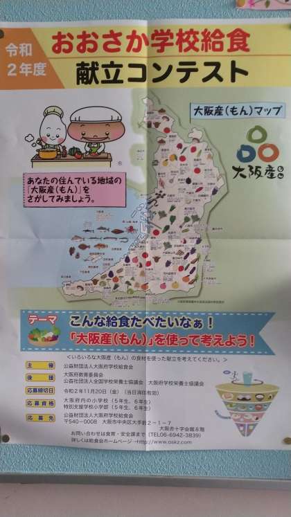 給食室の掲示板に、5・6年生向け「学校給食の献立コンテスト」のポスターが貼られていました。