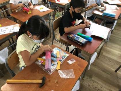 図画工作科では、「くぎうちとんとん」をしました。みんな上手に釘を木に打つことができ、上手に作品を作ることができました。