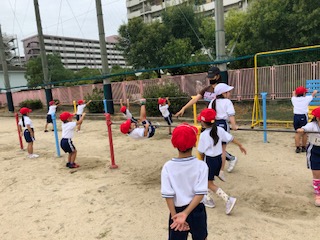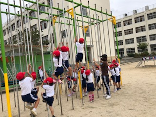 来週から、1年生では、遊具を使ったり、マットを使ったりと全身を使って体を活発に動かしていきます。一つでも多くチャレンジできるよう頑張りましょう。