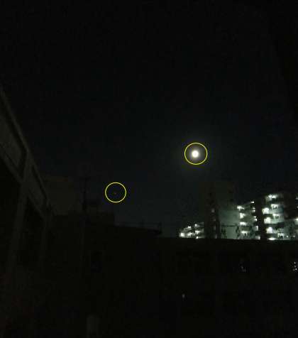 「火星」も赤く輝いています。月と火星の競演といったところですね。しばらく見ることができますよ。見る人は、夜なので、おうちの人(おとなの人)と一緒に見てください。