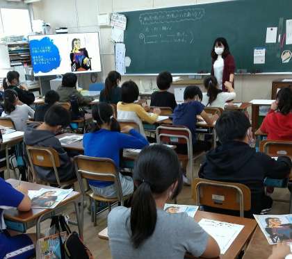 指導者が高校時代に描いた作品とその絵にまつわるストーリーが披露されました。子どもたちは、作者の心情が絵に表現されるんだということを実感としてとらえたようです。