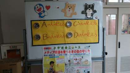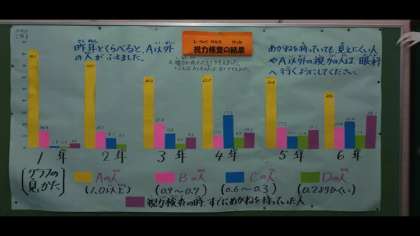 保健室前に掲示しています。残念ながら、去年より視力が落ちた人が増えたようです。