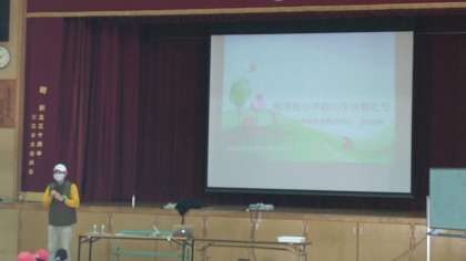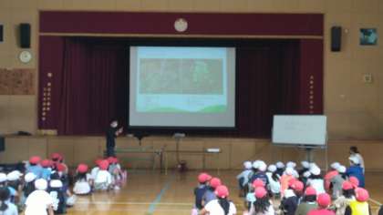 (写真は、フィールドワークに出かける前の全体指導のようすです。)