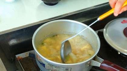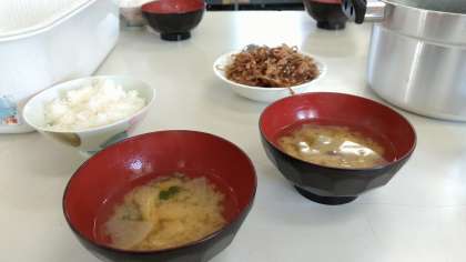 大根・油揚げ・椎茸・葱…具だくさんのみそ汁に