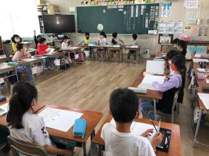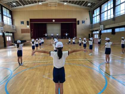 体育では、マット運動や持久走をしています。走れ走れに向けて、体幹をきたえたり、体力をつけたりしています。マット運動では開脚前転の練習をしています。みんな少しずつ上達しています。