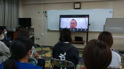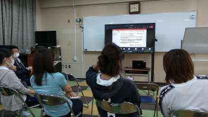 「スクールライフノート」が導入されることにともない、活用のしかたを学ぶ研修を教育センター等とオンラインで結んで行いました。