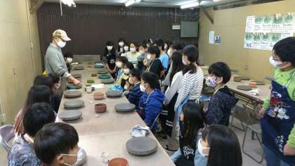 信楽焼の陶芸体験が始まりました。