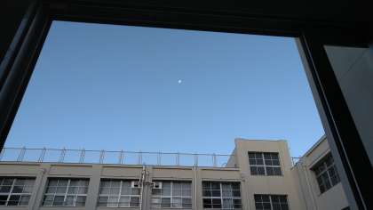今朝、校舎内をまわっていると窓から見える月がきれいでした。間もなく校庭にも日が差し込むでしょう。深秋の穏やかな朝です。日々の喧騒を忘れさせる一瞬です。