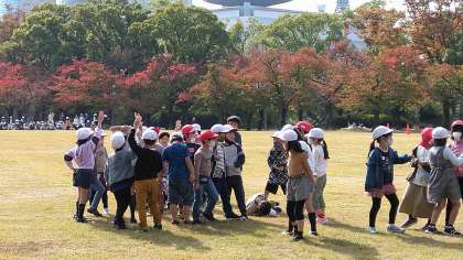 遠足実行委員のメンバーが呼びかけて楽しんでいました。