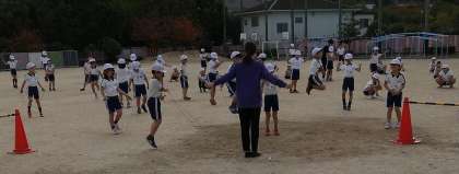 日当たりはあるものの、空気は乾燥して、ひんやりとした校庭では、寒さに負けずに体育の授業をがんばっていました。