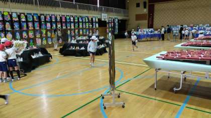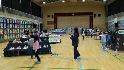 子どもたちは、土曜授業ですが、授業参観は、ありません。講堂(体育館)の作品展のみ観覧していただけます。