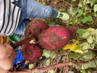 収穫したさつま芋は、今学期中にスイートポテトにし、皆で味わいたいと思っています!