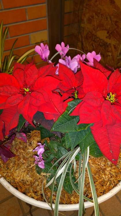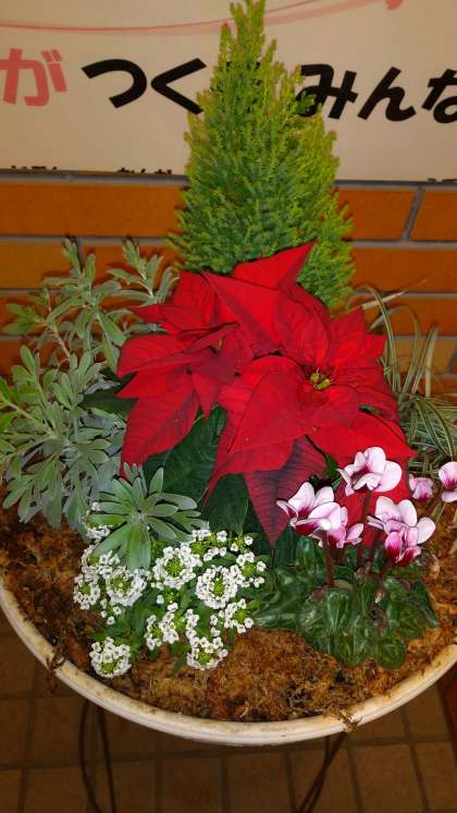 ポインセチアの赤が、クリスマスシーズンにぴったりですね。