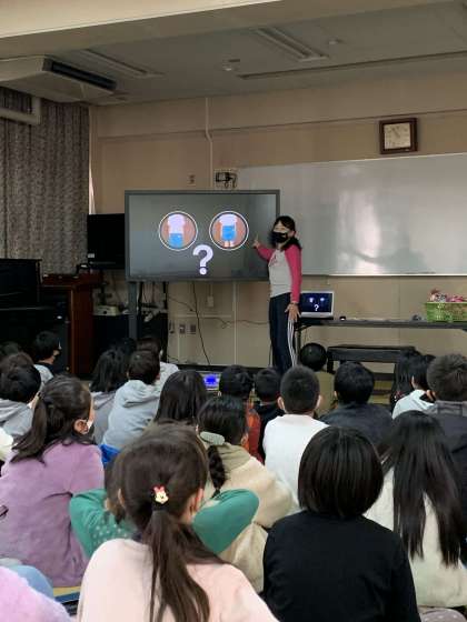 「後ろ姿クイズ」や「声あてクイズ」などから、男女の体の違い、成長の仕方の違い、少しずつ大人の体に近づいていること、そして、「プライベートゾーン」について学習しました。