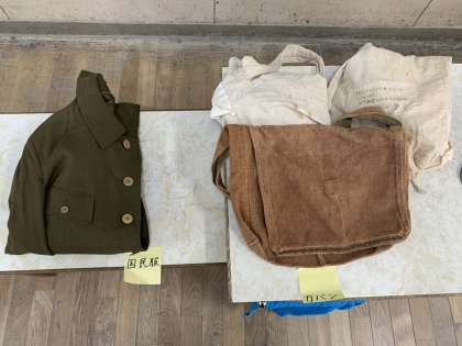 国民服や、兵隊が身につけていたカバン、市民用のヘルメットなど……