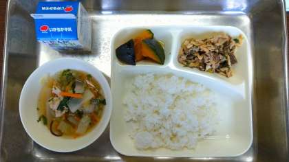 写真は、先週金曜日の給食ですが、「焼きかぼちゃの甘みつかけ」がメニューにありました。おいしかったですね。このように、学校の給食では、季節や季節ごとの行事にちなんだとくべつメニューがでる日があります。次のとくべつメニューは何かたのしみですね。
