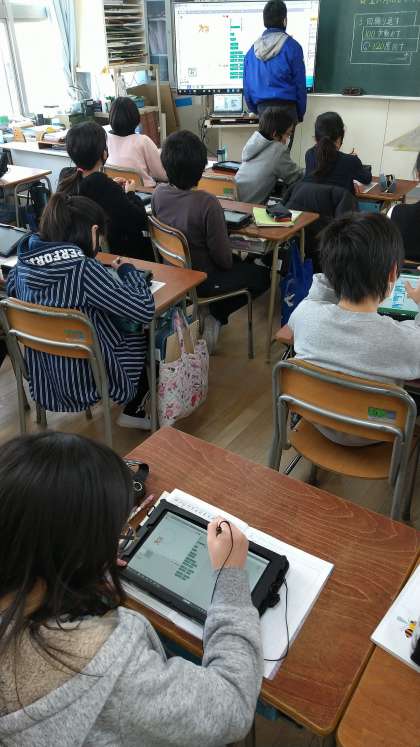 5年生算数科の「正多角形と円」の単元で、プログラミング教育からアプローチしました。今日は、プログラム言語Scratchをツールとして用いて、「正多角形をかくプログラムを考えよう」という課題です。