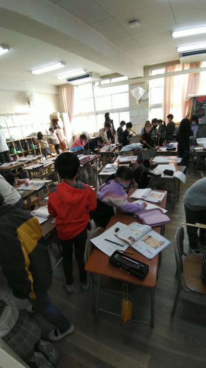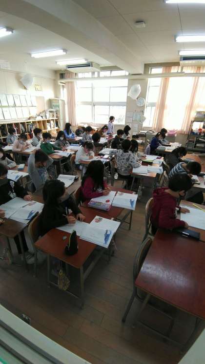 国語は、「かさこじぞう」で発表していました。みんなよく手が上がっていました。