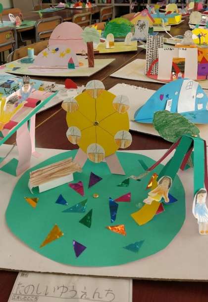 3年フロアーの学習室に置かれていました。みんなよく工夫していています。紙用接着剤を乾燥させるように置かれていたので、まだ製作途中かな?