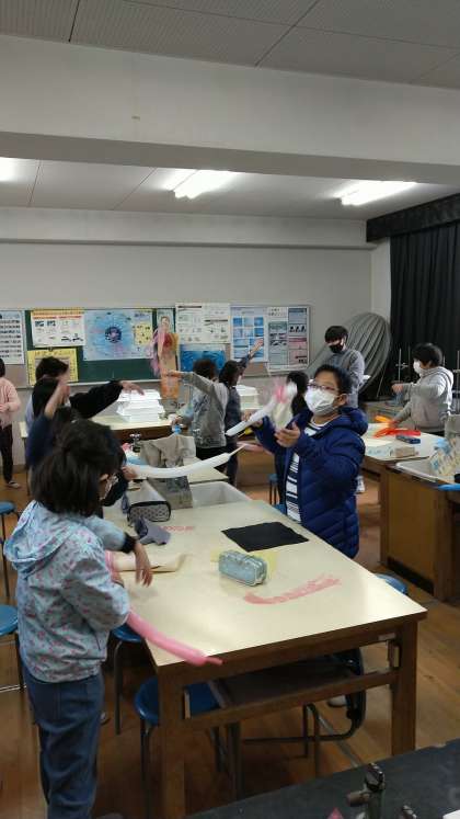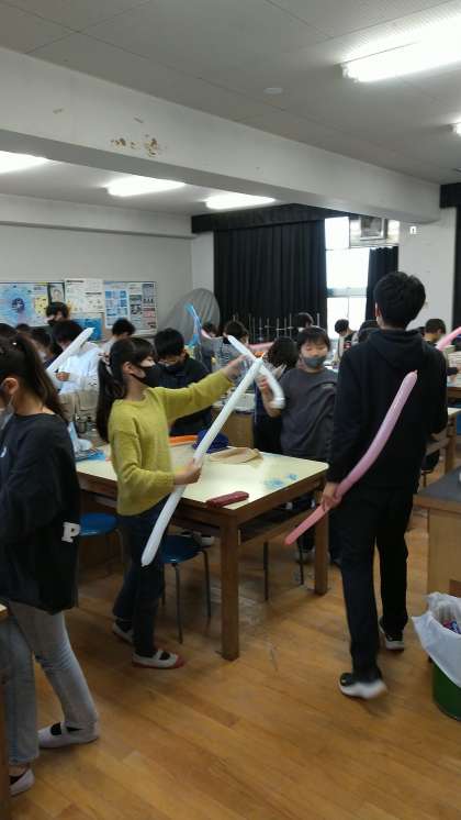 理科室では、科学クラブが静電気をためた風船と細く裂いたリボンで「電気クラゲ」の実験をしていました。乾燥した季節に指先から放電して不快な思いをする静電気ですが、静電気をうまく利用してトナーを定着させ印刷する機械が「コピー機」です。不快なものも工夫次第で生活を豊かにします。