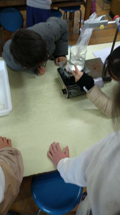 理科室で温度による水の状態変化を確かめる実験をしていました。