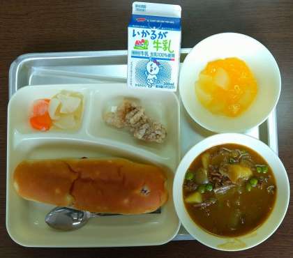 さらに一品追加のデザートは、みかんゼリーと和梨で彩りよく。どれもとても美味しかったです。6年生にとって小学校生活最後の給食まであとわずかですね。